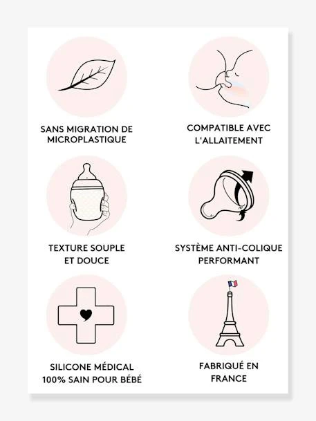 - La tétine du BibRond Élhée de forme naturelle et physiologique, en silicone extra-souple, contribue au bon développement buccal de votre enfant. Elle est équipée d’une valve anti-colique spécifiquement conçue pour réduire l’absorption d’air par l’enfant lors de la succion de façon à diminuer efficacement les risques de coliques