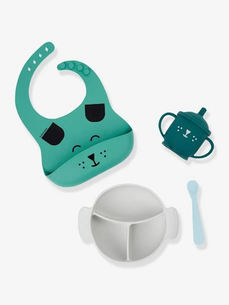 - Kit repas complet : contient 1 bol, 1 tasse, 1 cuillère et 1 bavoir