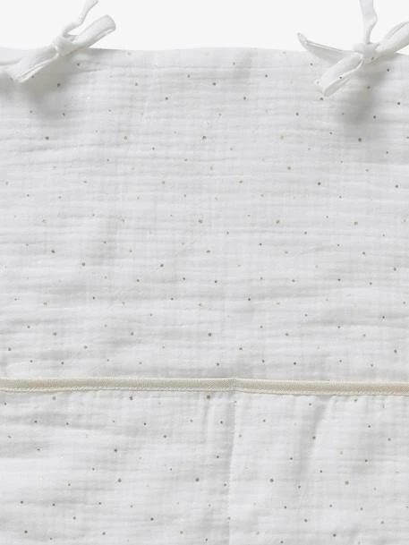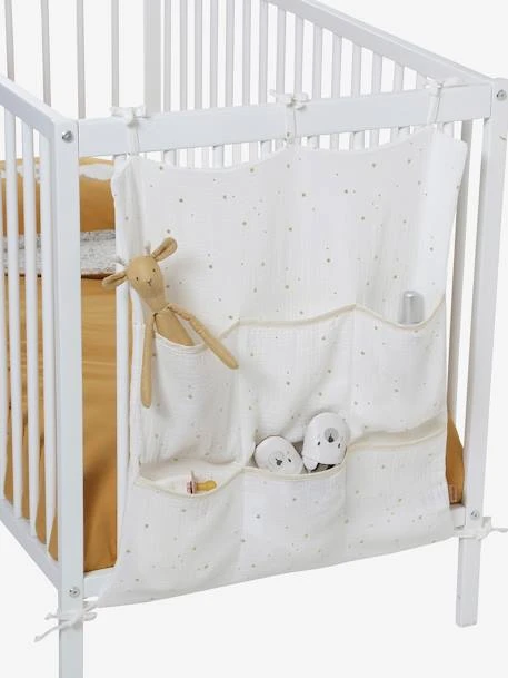 Pratique pour ranger les affaires de bébé, cet organisateur se fixe sur la table à langer ou au lit de bébé. Il dispose de 6 poches et décore avec tendresse l’espace à langer avec sa gaze de coton imprimée de petites étoiles dorées.